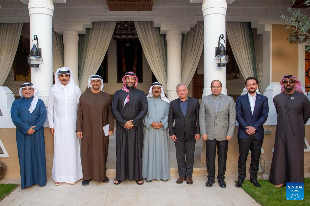 Leaders of Egypt, Jordan, Saudi Arabia, the United Arab Emirates (UAE), Qatar, Kuwait, and Bahrain met in Saudi Arabia’s capital Riyadh on Friday to discuss the Palestinian issue and the developments in the Gaza Strip, the official Saudi Press Agency (SPA) reported.