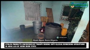 “Similarly, in Delta State, at Ifie Community in Warri South LGA, an illegal refining site was discovered with two cooking pots. Also recovered at the site were 35 sacks filled with over 1,050 litres of stolen AGO. Meanwhile, in Akwa Ibom State, at Ekparakwa Community along the Ikot Abasi–Oruk Anam road, a red mini bus with registration number ABK 398XA was intercepted. The vehicle was loaded with 750 litres of stolen AGO contained in 25 nylon bags. Additionally, troops raided an illegal refining site at Ukpom Community in Abak LGA. During the operation, 21 jerricans filled with stolen AGO, along with several empty jerricans and storage drums, were destroyed. Troops maintained vigilance in Bayelsa State, dominating waterways and hinterlands, effectively denying criminals freedom of action.”