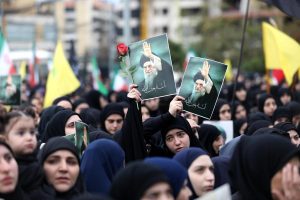 People gather to express solidarity with Iran and protest against the killing of Iran’s Supreme Leader Ayatollah Ali Khamenei in the southern suburbs of Beirut, Lebanon, March 1, 2026. (Photo by Bilal Jawich/Xinhua)