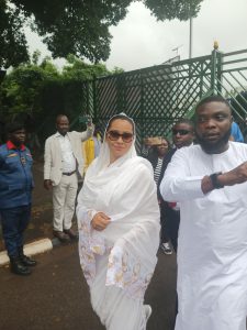 When the Kogi senator’s convoy was stopped at the Police gate for about 30 minutes and all entreaties fell on deaf ears, Senator Natasha in company of Aisha Yesufu alighted from the SUV and walked on foot to the next gate with many supporters.
