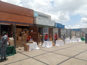 The outgone Controller of Area 11 Command Onne , Comptroller Mohammed Babandede displayed the intercepted containers before journalists at Onne on Tuesday shortly after handling over the leadership of the Command to the new Comptroller, Aliyu Alkali.