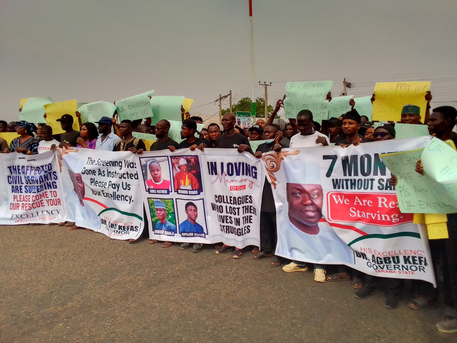 The proscribed workers in Taraba State civil service represented by the government as “ghost workers” on Monday staged the 3rd protest over unpaid 7 months salaries.