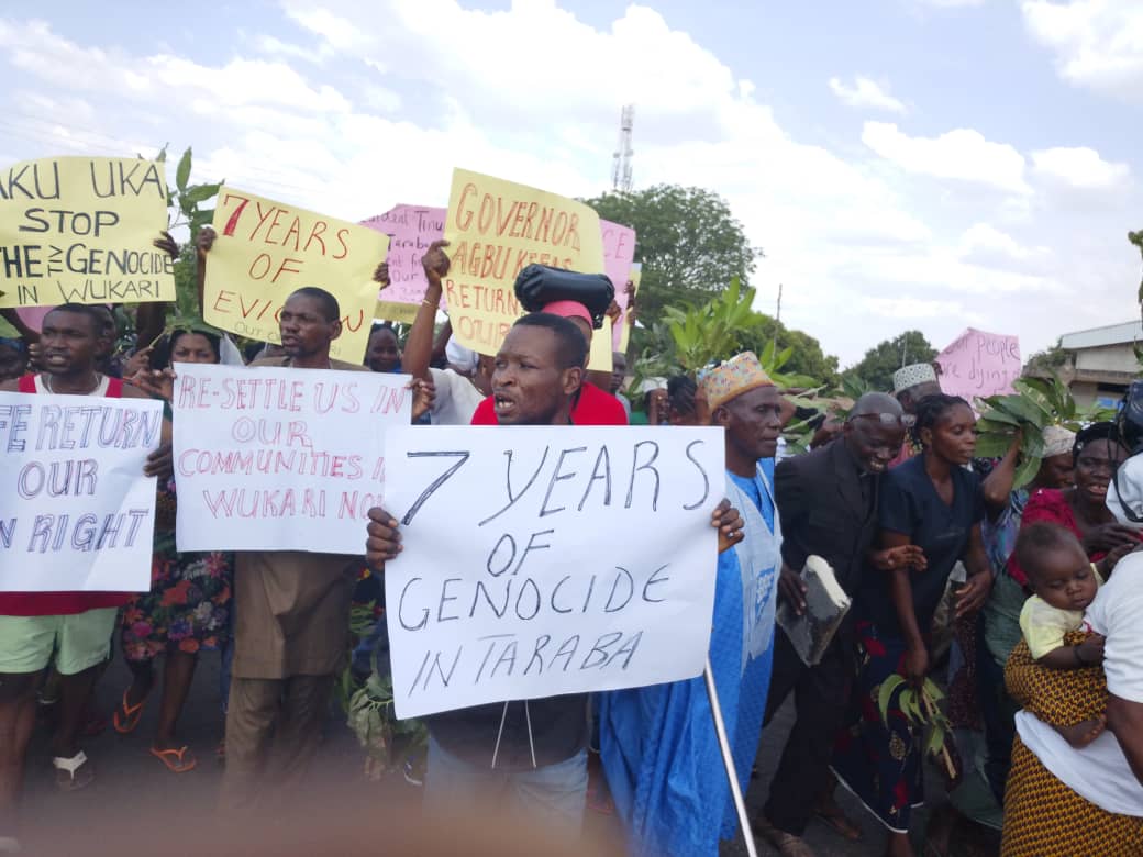 The displaced Christian population of Tiv extraction in Wukari LGA of Taraba state, have  staged a peaceful protest after 7 years in IDP camps.