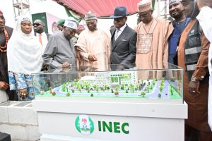 President found time to personally perform the ground breaking ceremony of the INEC Annex Building to complement the current headquarters of the Commission.